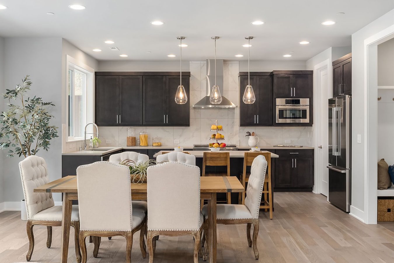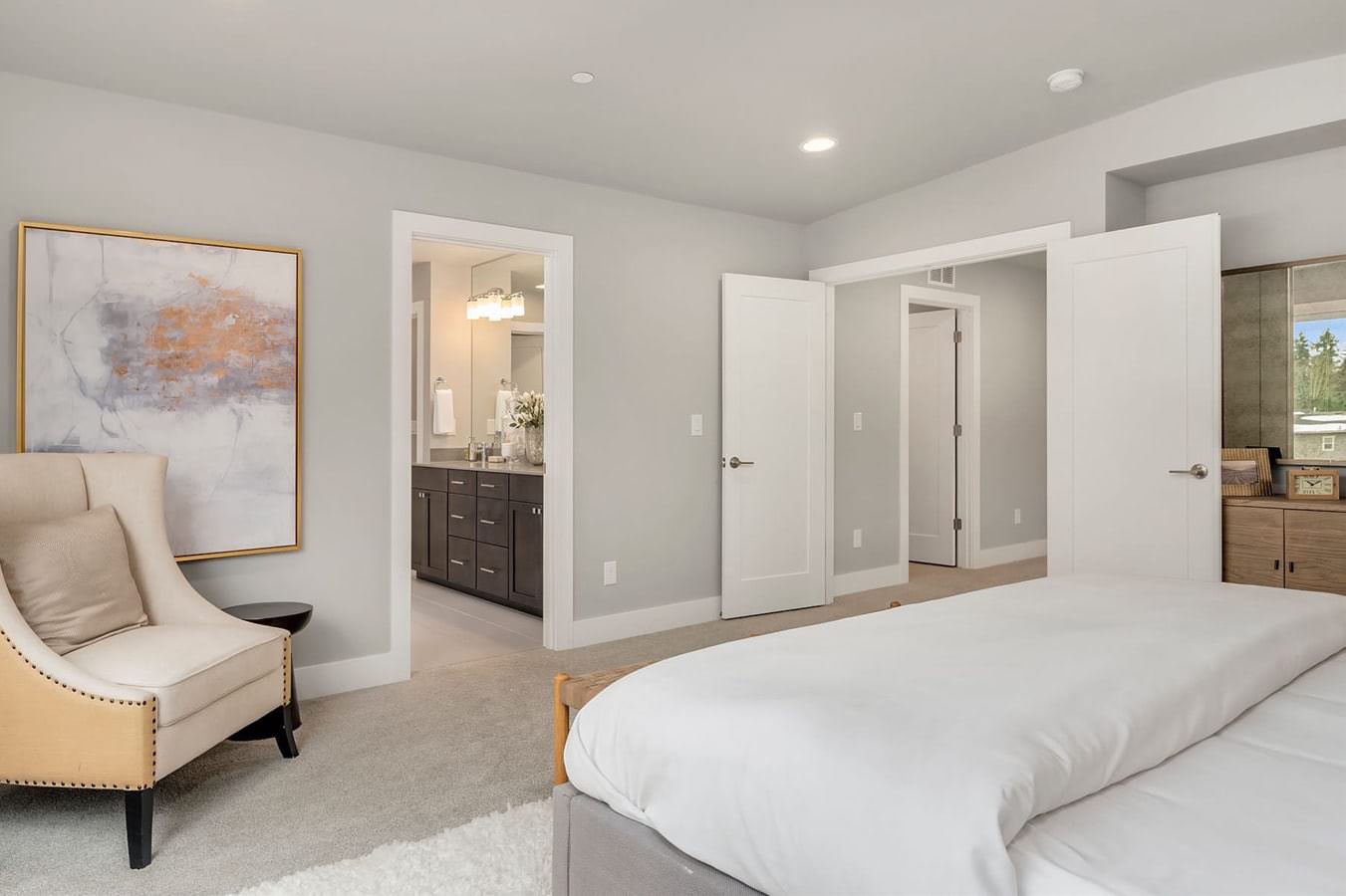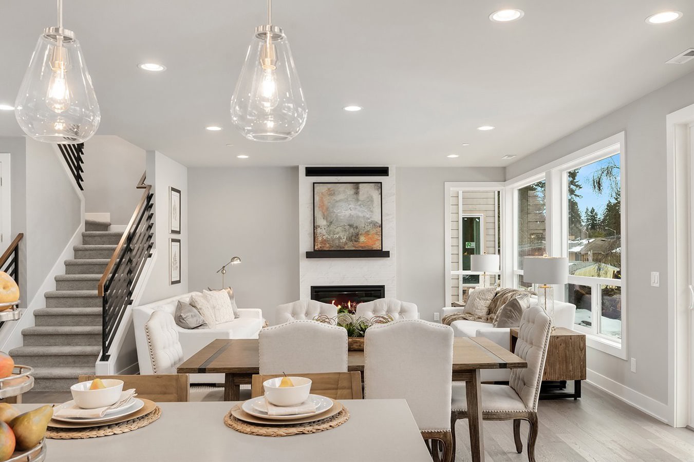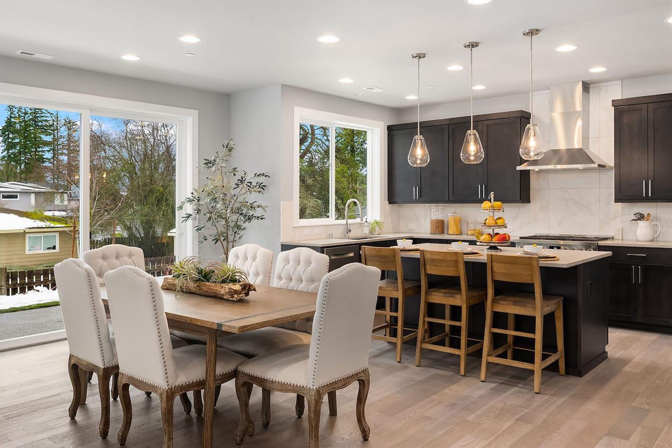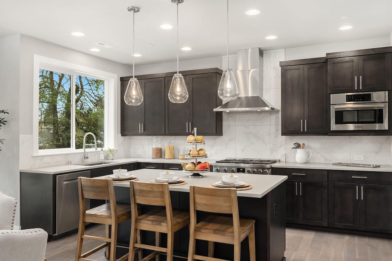 Named after a gorgeous golden rose, Soleil and Soleil North are situated in the heart of the Rose Hill neighborhood. Unique contemporary 1,600-3,500 sq ft homes are available in a wide variety of family-friendly floorplans with home offices, designer kitchens and main floor guest suites. Finishes include custom millwork feature walls, engineered hardwoods and quartz countertops throughout. Oversized windows let in natural light and professionally landscaped front and back yards provide picturesque foregrounds and backdrops. Soleil and Soleil North are conveniently located just minutes from shopping, restaurants, and parks in the award-winning Lake Washington School District.