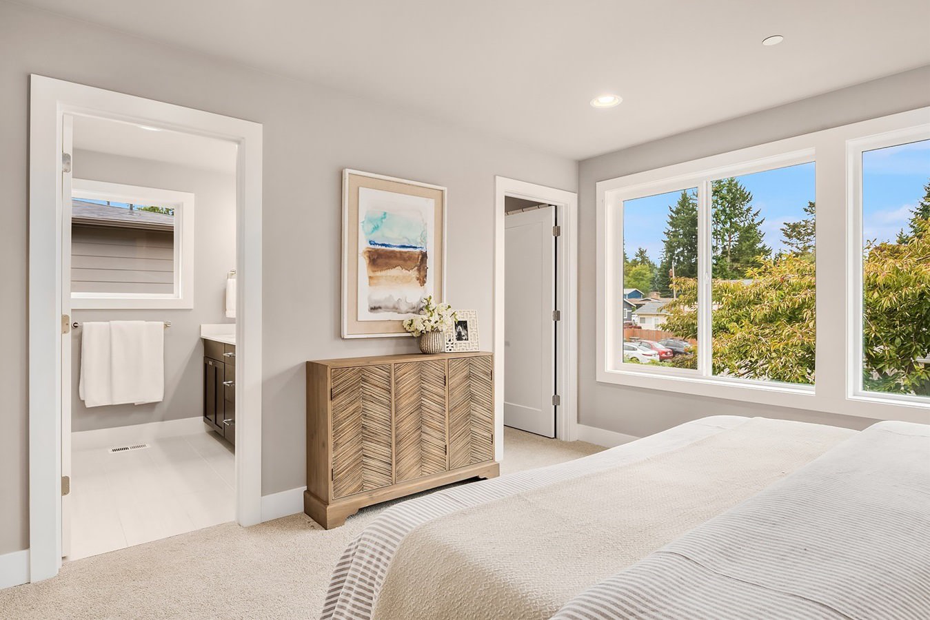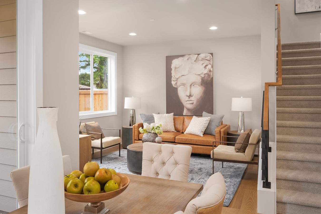 Named after a gorgeous golden rose, Soleil and Soleil North are situated in the heart of the Rose Hill neighborhood. Unique contemporary 1,600-3,500 sq ft homes are available in a wide variety of family-friendly floorplans with home offices, designer kitchens and main floor guest suites. Finishes include custom millwork feature walls, engineered hardwoods and quartz countertops throughout. Oversized windows let in natural light and professionally landscaped front and back yards provide picturesque foregrounds and backdrops. Soleil and Soleil North are conveniently located just minutes from shopping, restaurants, and parks in the award-winning Lake Washington School District.