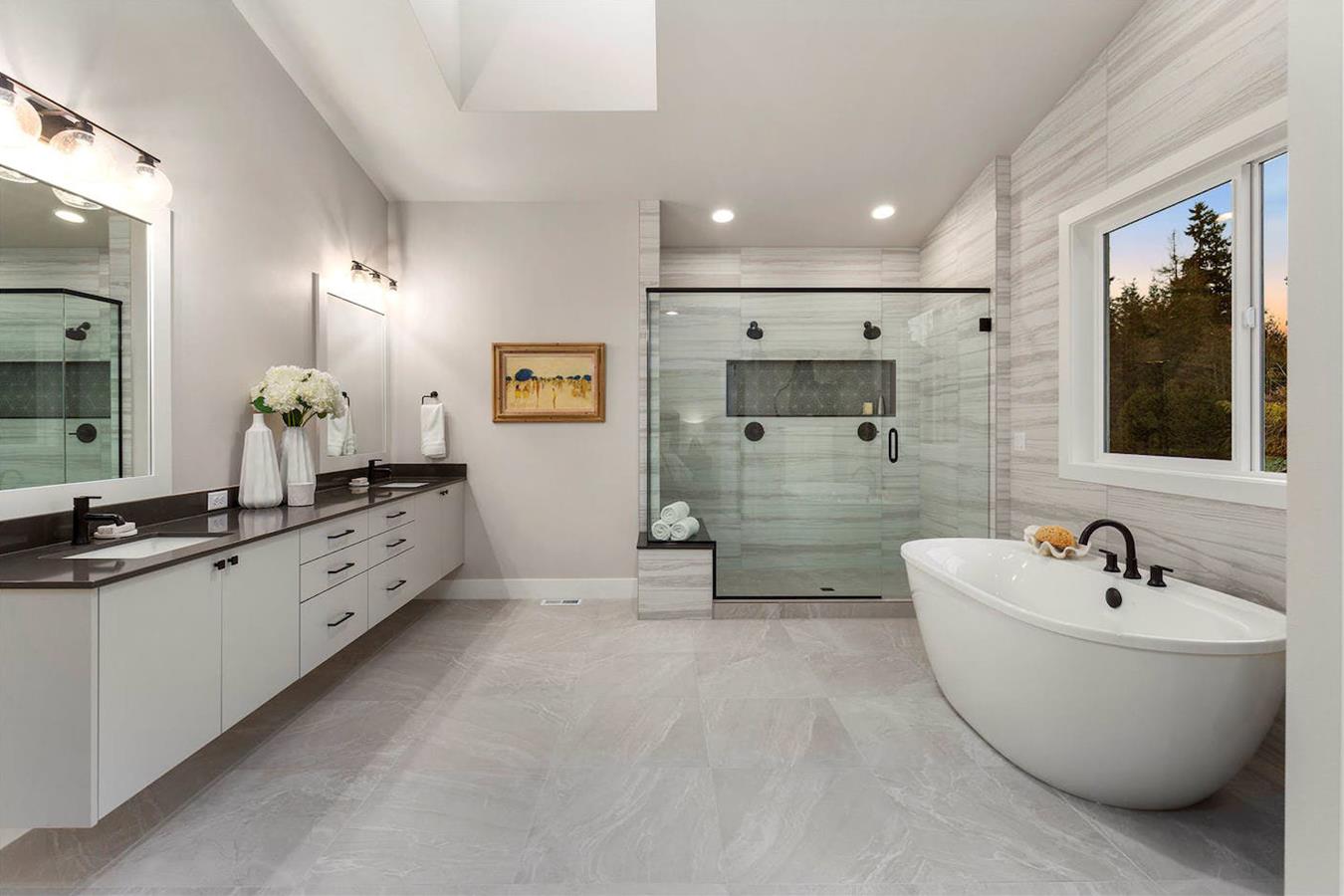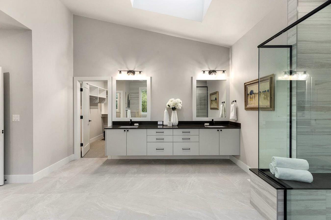 • Floating vanity in primary bathroom