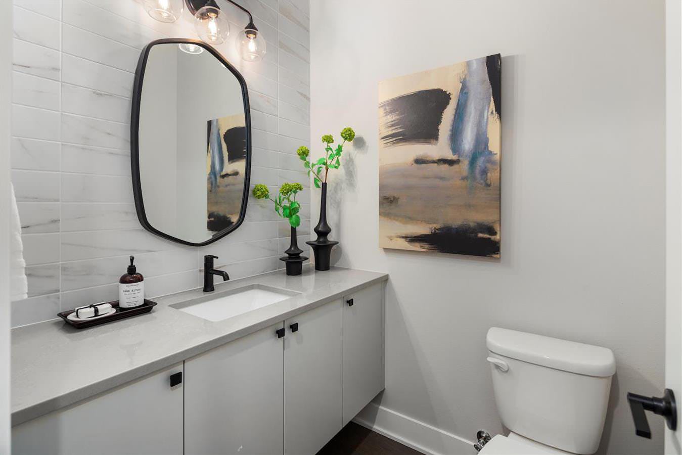 • Floating vanity in primary bathroom