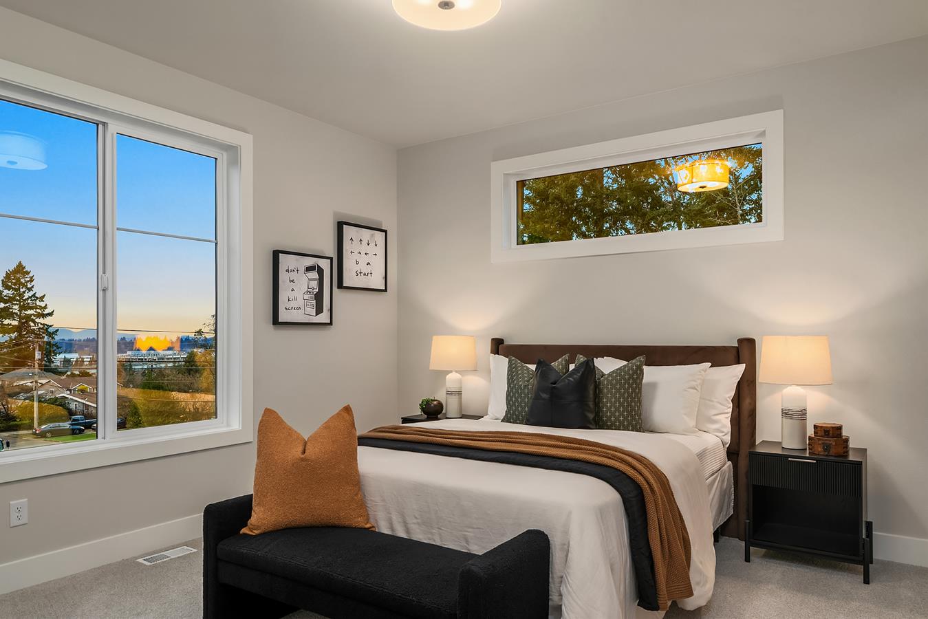 Exquisite newly constructed luxury home in Bellevue’s desirable Eastgate neighborhood, built by Terrene Homes. This thoughtfully designed residence features a sun-drenched two-story great room with soaring ceilings, floor-to-ceiling windows, and a cozy gas fireplace—perfect for everyday living and entertaining. The chef’s kitchen is the heart of the home, showcasing a 6-burner gas range, oversized center island, and premium finishes for effortless gatherings. The spacious primary suite offers a private retreat with a spa-inspired ensuite, soaking tub, glass-enclosed shower, dual vanities, and dual walk-in closets. A dedicated home office captures west-facing Olympic Mountain views and golden-hour sunsets. The expansive west-facing bonus room offers flexibility for a media room, playroom, or lounge. A main-level multigenerational suite with ensuite bath and private patio adds versatility. Enjoy seamless indoor-outdoor living with a covered patio, outdoor gas fireplace, and surround sound. Fully fenced and professionally landscaped, this Eastgate Bellevue home blends modern luxury, flexible living, and iconic Northwest views.